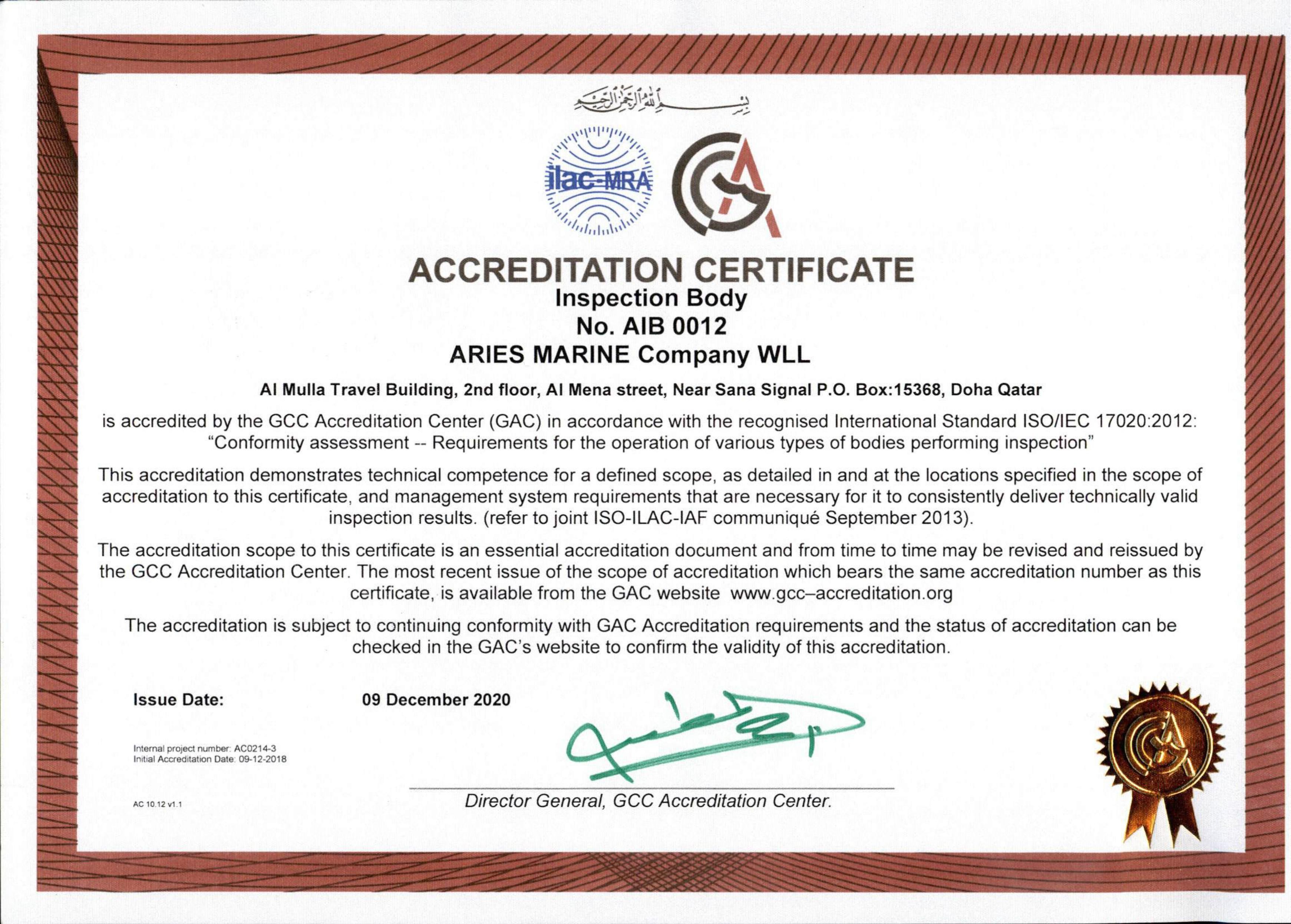 Qatar-ISO/IEC 17020:2012 by GAC, detailed scope available on request