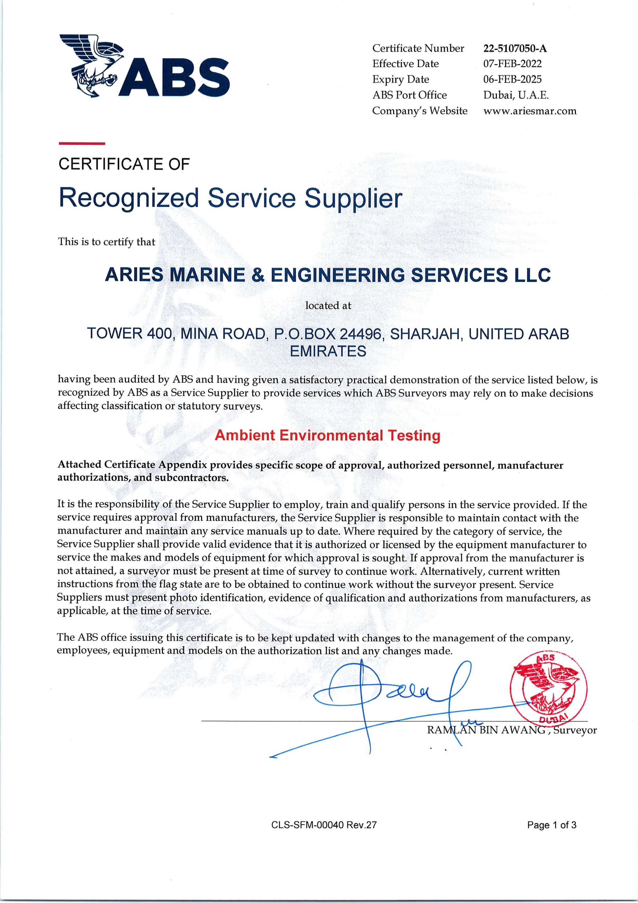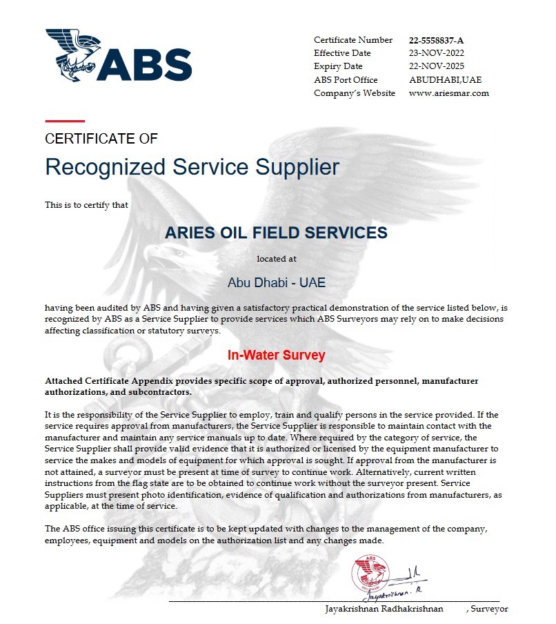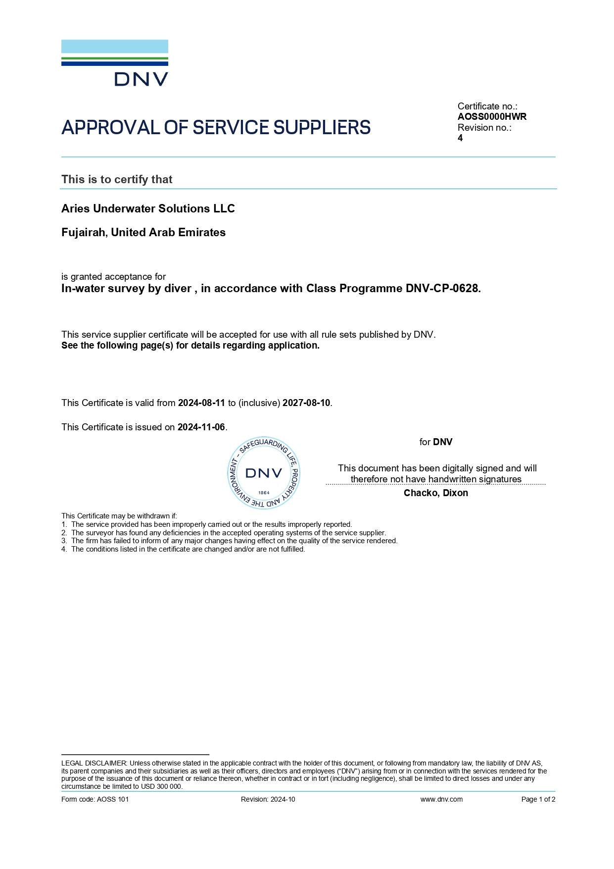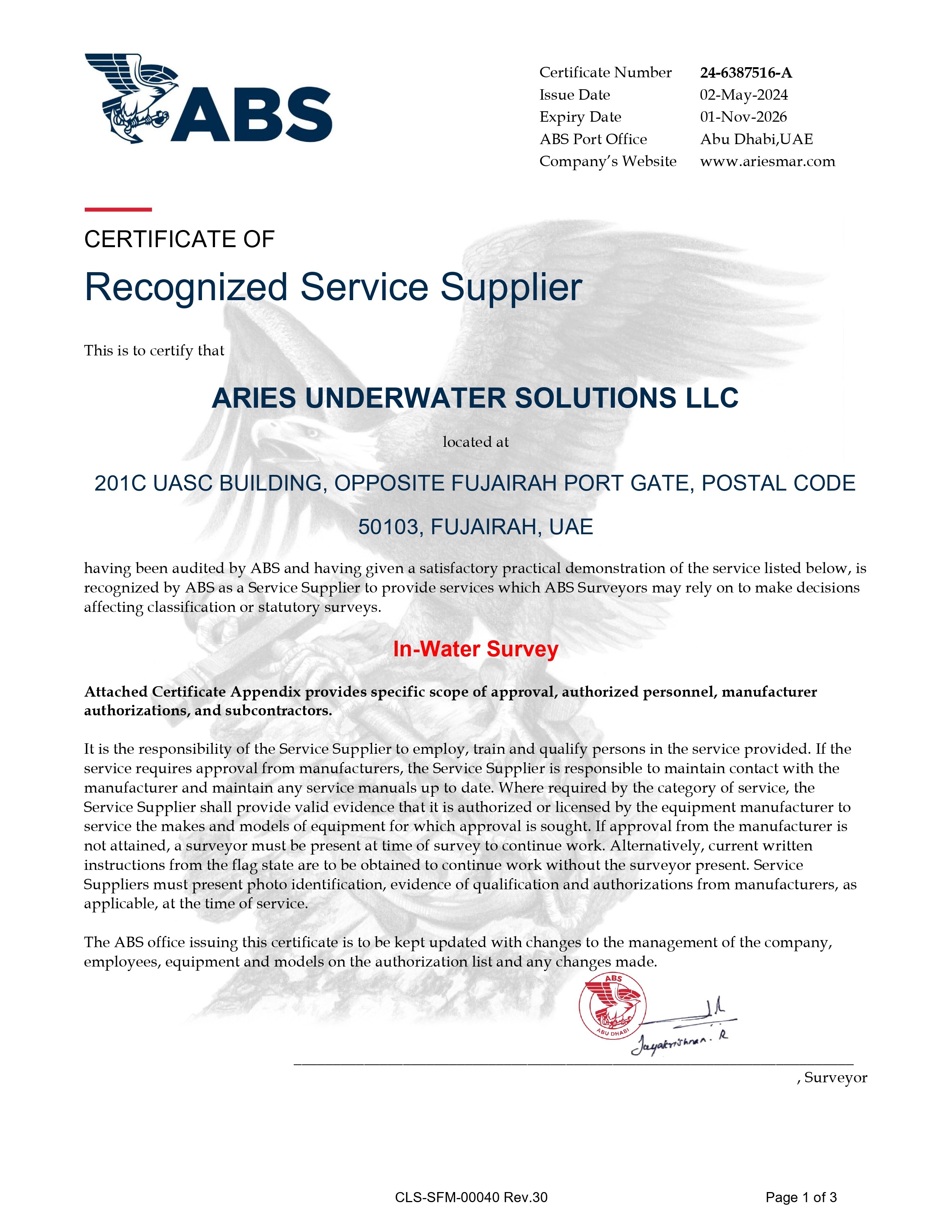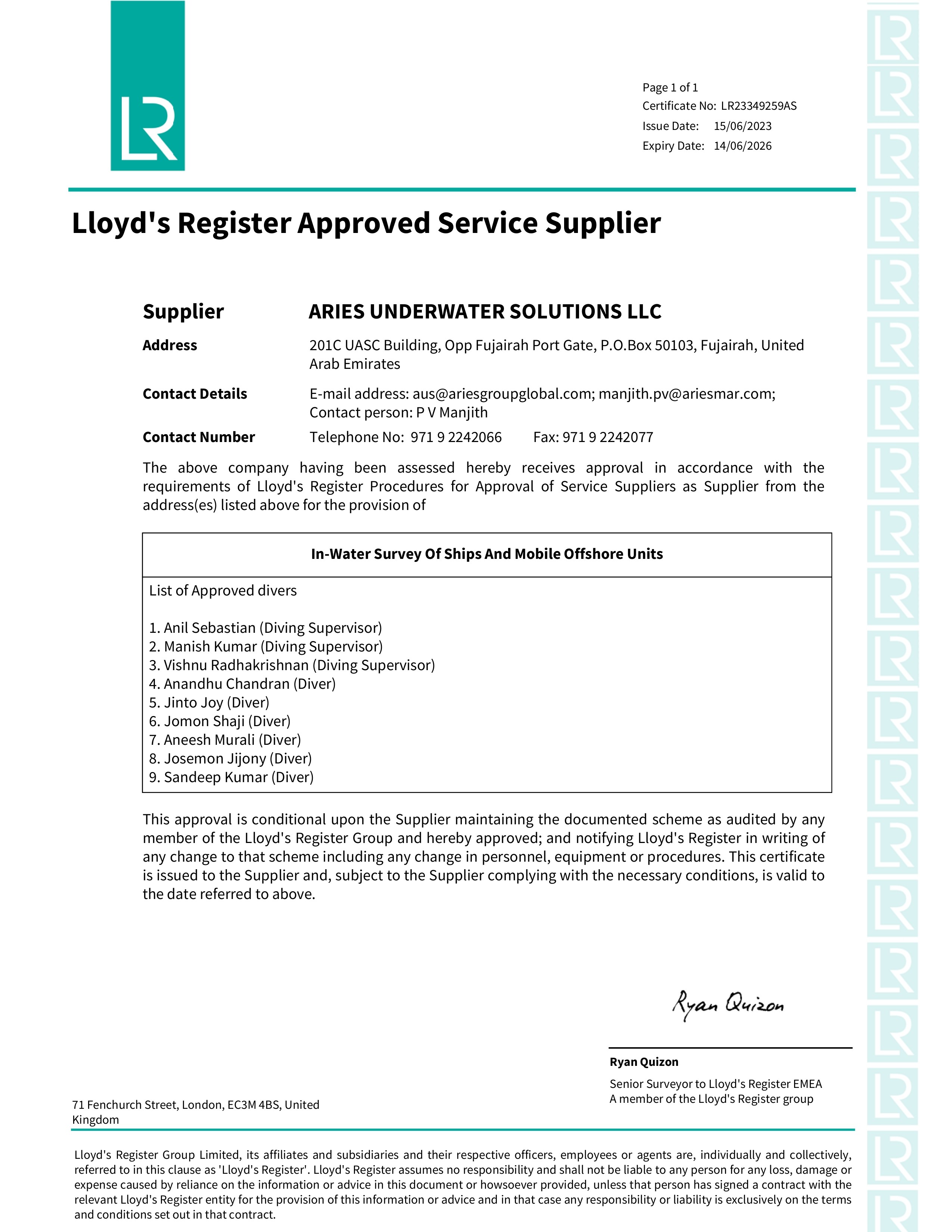 LR Certificate_ARIES UNDERWATER SOLUTIONS LLC