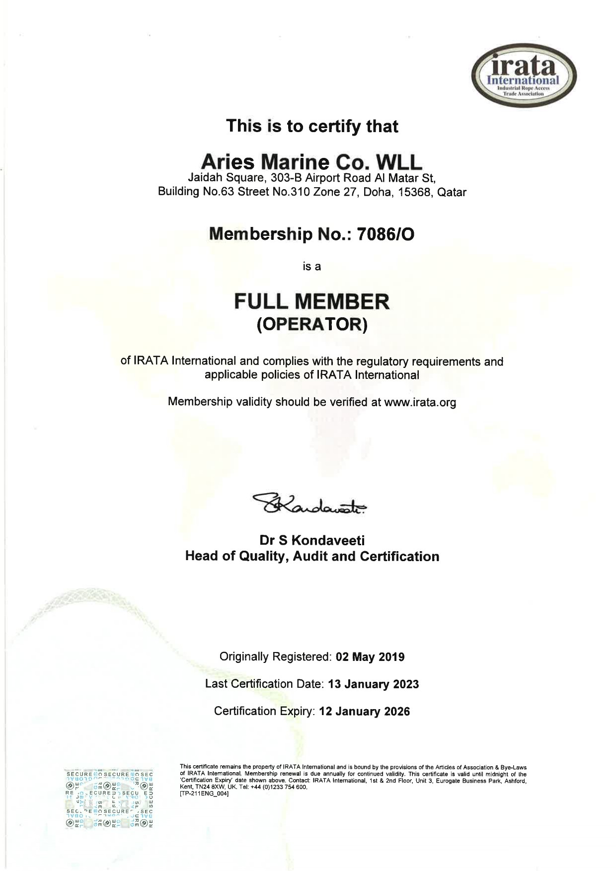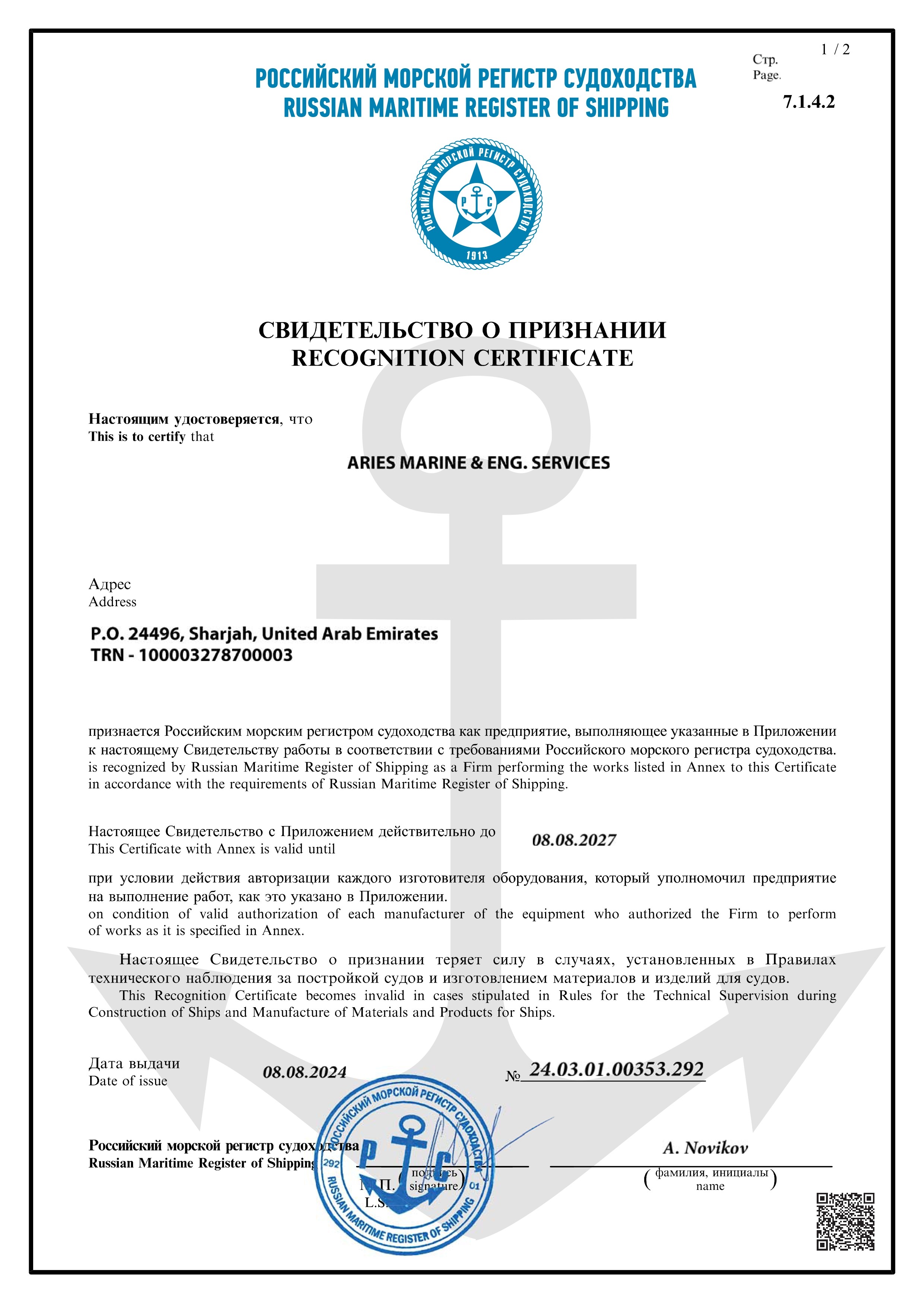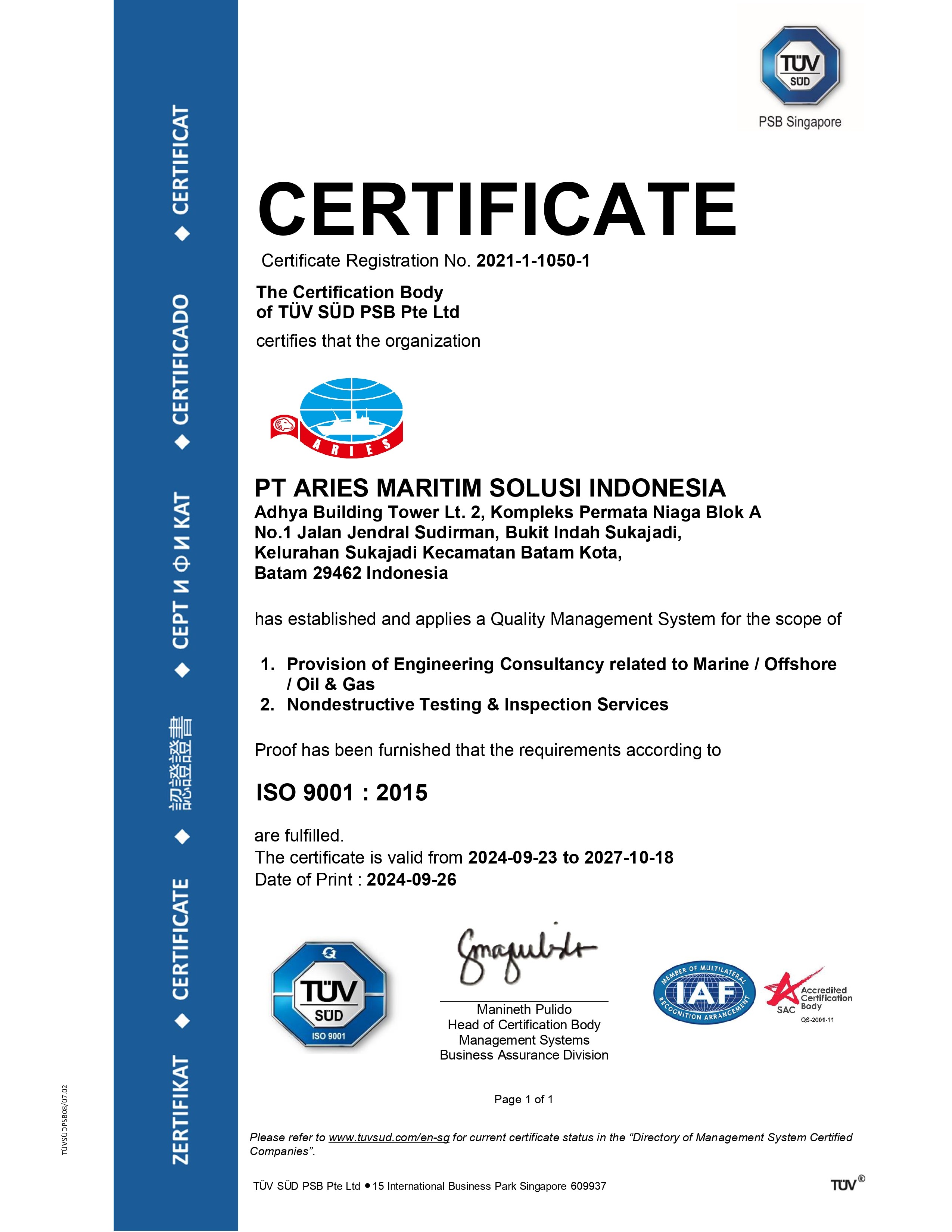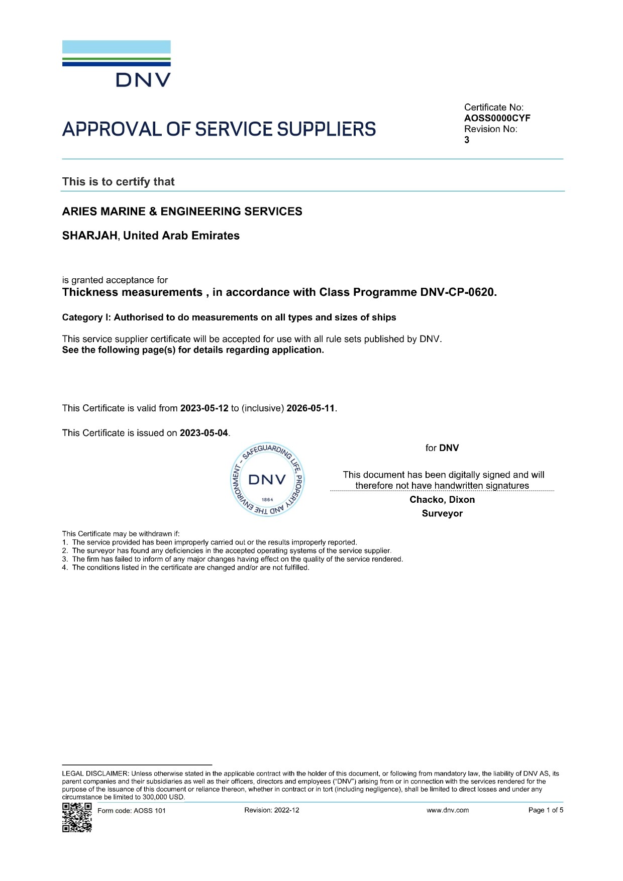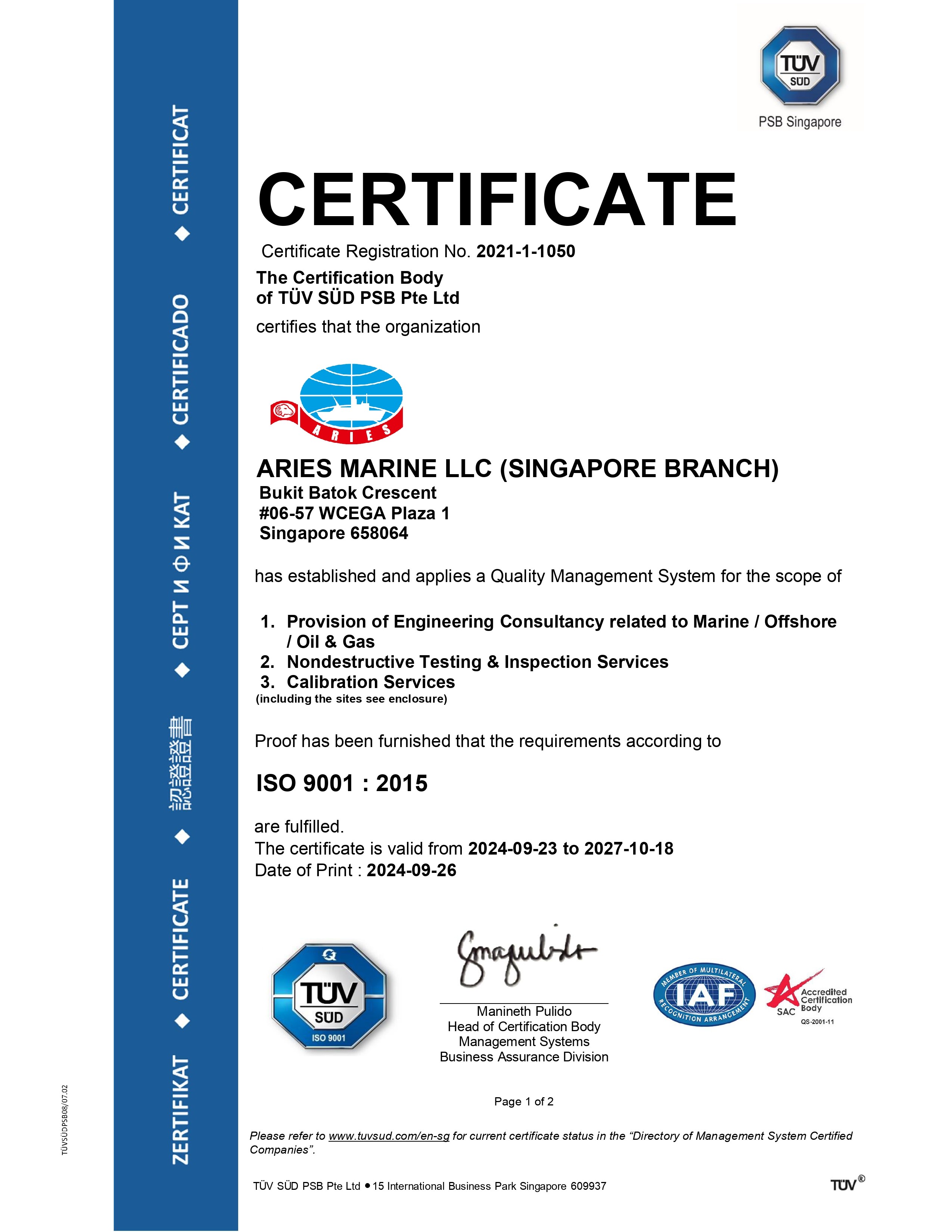 LR Certificate_ARIES UNDERWATER SOLUTIONS LLC