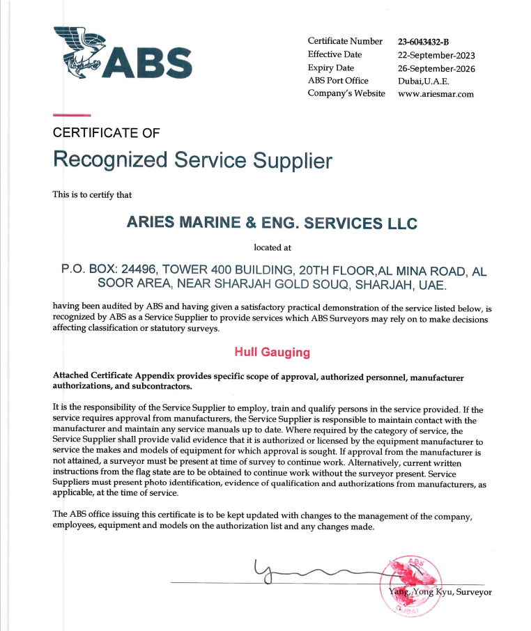American Bureau of Shipping (ABS)- ESP Hull Gauging